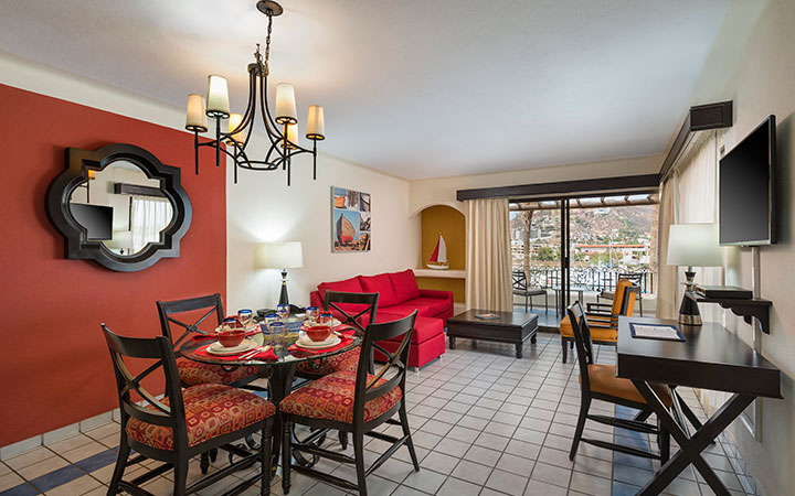 Inspired by marina views and Mexico’s vibrant spirit, our suites feature nautical decor, cozy bedding, elegant furniture, and well-equipped kitchens. Enjoy flat-screen TVs, cable, sofa beds, and private balconies with stunning views of the marina and city.