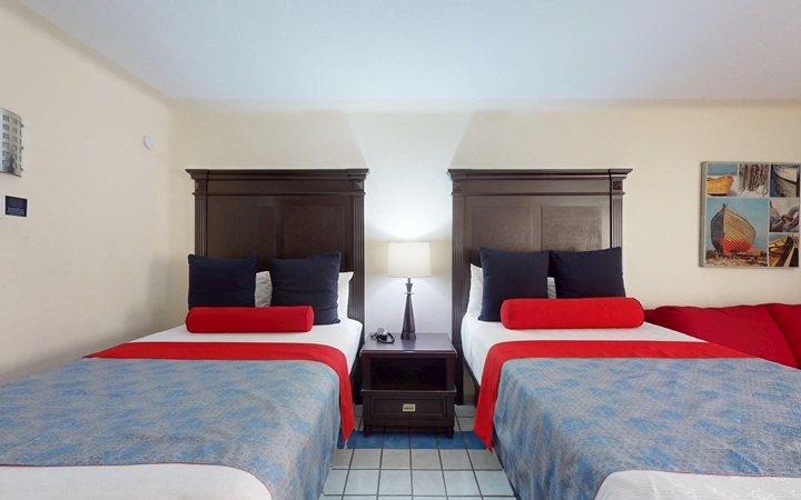 Make yourself comfortable in this one-bedroom suite that includes two Queen beds, a living room with sofa sleeper, a dining area, a full kitchen, and views of the pool or marina.
